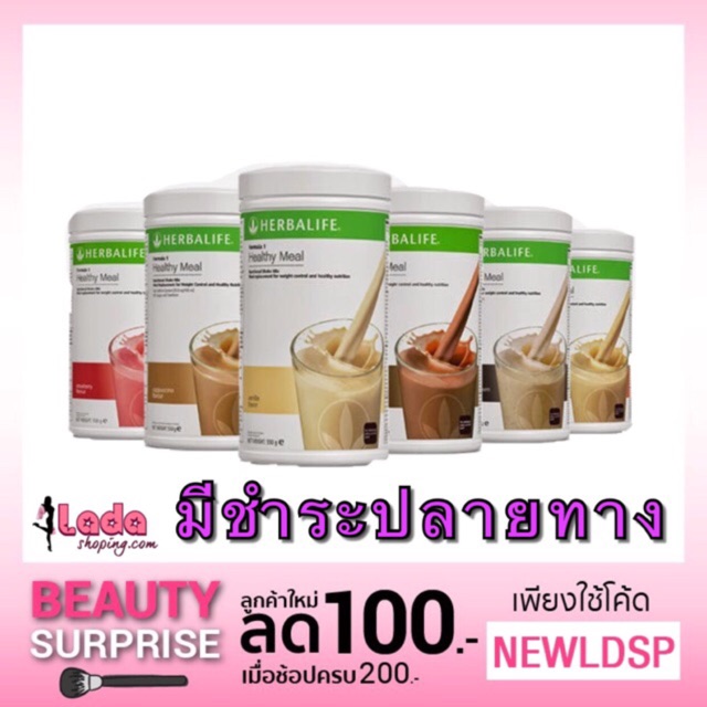 ? ? Id line :@ladashoping(มี@ด้วยน๊า) ?หรือคลิ๊ก http://line.me/ti/p/@ladashoping ——————————————————————— ลูกค้าใหม่รับส่วนลด 100 บาท เพียงใส่โค้ด .. NEWLDSP..ตอนขำระเงิน (สำหรับการสั่งซื้อครั้งแรกเท่านั้น) คำสั่งซื้อขั้นต่ำ: 200 บาท ———————————— 1-2 กระปุก เลือกจัดส่งแบบไหนก็ได้ 2 กระปุกขึ้นไป เลือกจัดส่ง Kerry เท่านั้นนะคะ ? มี6 รสชาติให้ลิ้มลอง 1 แก้ว 90 แคล เท่านั้นนะจ้ะ รายละเอียดสินค้า Herbalife เฮอร์บาไลฟ์ เชค นิวทริชันแนล โปรตีน มิกซ์ ผลิตภัณฑ์เสริมอาหาร โปรตีนสกัดจากถั่วเหลือง กลิ่นวานิลลา(550g) ช่วยปรับสมดุลในร่างกาย จึงสามารถทานได้ทั้งโปรแกรมลดน้ำหนัก เพิ่มน้ำหนัก และรักษาสุขภาพ • เป็นเครื่องดื่มทางโภชนาการ ให้สารอาหารครบถ้วนทั้ง 5 หมู่ผ่าน อย. 65 กว่าประเทศ • ผลิตจากถั่วเหลือตามธรรมชาติ ที่มีโปรตีนคุณภาพสูง • เสริมสร้างภูมิต้านทาน และซ่อมแซมส่วนที่บกพร่องของร่างกายให้เป็นปกติ • ผลิตขึ้นจากถั่วเหลืองตามธรรมชาติ ให้โปรตีนที่ได้คุณภาพสูง • ให้กรดอะมิโนต่างๆ รวมทั้งกรดอะมิโนจำเป็นทั้ง 9 ชนิด ซึ่งร่างกายไม่สามารถสร้างได้เอง • ประกอบด้วย คาร์โบไฮเดรต เพื่อเป็นแหล่งพลังงาน พร้อมทั้งวิตามินและเกลือแร่ Herbalife Nutrition Protein Drink Mix (เชค) ลดน้ำหนัก เพิ่มน้ำหนัก รักษาสุขภาพร่างกายสดชื่น หลับสบาย บรรเทาอาการปวดหลัง ข้อ กระดูก เป็นเครื่องดื่มโภชนาการที่ผลิตขึ้นจากถั่วเหลืองตามธรรมชาติ ให้สารอาหารครบถ้วนทั้ง 5 หมู่ ตามที่ร่างกายจำเป็นต้องได้รับทุกวันในปริมาณที่เหมาะสม ประกอบด้วย โปรตีน คาร์โบไฮเดรต วิตามิน และเกลือแร่ต่าง ๆ กรดอะมิโน 18 ชนิด ที่จำเป็นต่อร่างกาย ซึ่งในจำนวนนี้มีอยู่ 9 ชนิดที่ร่างกายไม่สามารถผลิตเองได้ โปรตีน ดริ้งค์มิกซ์( เชค ) ให้โปรตีนสูงถึง 8 กรัม แต่มีแคลลอรี่ต่ำเพียง 90 กิโลแคลลอรี่ และไขมัน 0 % เหมาะสำหรับควบคุมน้ำหนักอย่างได้ผล คุณสมบัติ 1. เป็นอาหารระดับเซลล์ (Cellular Nutrition) ที่เข้าสู่ร่างกายแล้วสามารถดูดซึมใช้ได้ทันที 2. ช่วยปรับสมดุลในร่างกาย จึงสามารถทานได้ทั้งโปรแกรมลดน้ำหนัก เพิ่มน้ำหนัก และรักษาสุขภาพ 3. เสริมสร้างภูมิต้านทาน และซ่อมแซมส่วนที่บกพร่องของร่างกาย 4. ช่วยทำให้ผิวพรรณเปล่งปลั่ง สดใส และช่วยทำให้สดชื่น นอนหลับสบาย 5. บรรเทาอาการปวดหลัง ข้อ กระดูก และช่วยทำให้แผลหายเร็วขึ้น 6. มีซีลีเนียมช่วยพัฒนา IQ วิธีรับประทาน สูตรลดน้ำหนัก ครั้งละ 2 ช้อนโต๊ะพูนๆ แทนอาหารมื้อเช้า และมื้อเย็น สูตรเพิ่มน้ำหนัก ครั้งละ 2 ช้อนโต๊ะพูนๆ หลังอาหาร 3 มื้อ (เช้า กลางวัน เย็น) สูตรรักษาสุขภาพ ครั้งละ 2 ช้อนโต๊ะพูนๆ วันละ 1 แก้ว หมายเหตุ ควรผสมกับเครื่องดื่มเย็น 250CC ขึ้นไป (ห้ามผสมโปรต