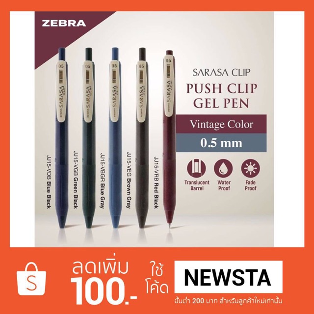 - ชื่อสินค้า ปากกาเจล Zebra SARASA CLIP Vintage ขนาด 0.5 (มี 5 สี)